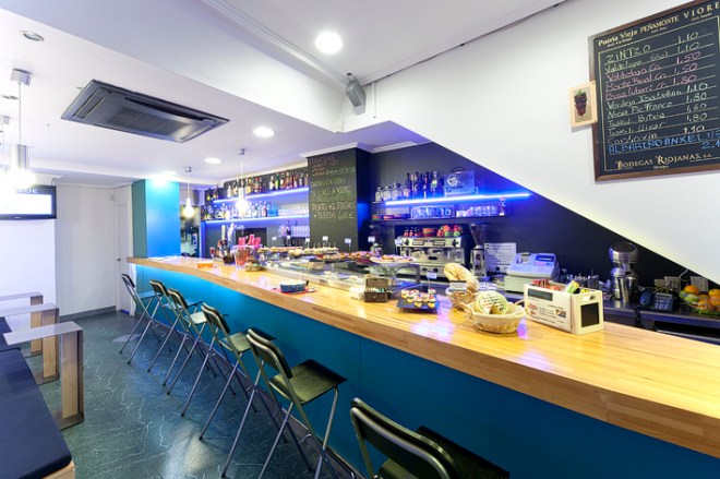 A principios de verano nos encargaron el cambio de imagen de una taberna en el Casco Viejo de Bilbao. Es un local alargado y estrecho, con una barra larga. La parte del fondo es más ancha y ahí pudimos colocar una zona de mesas y un banco corrido.