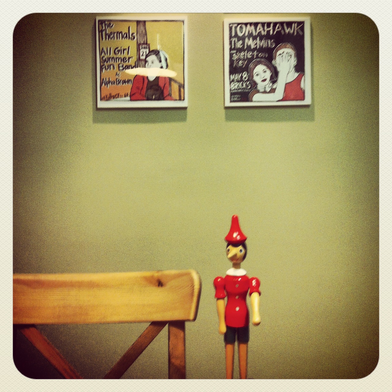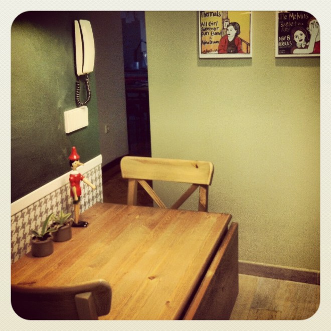 Decidimos tomar como referencia los colores del Pinocho que adornaba un rincón de la cocina, que son el color madera, el verde botella y el rojo vivo.