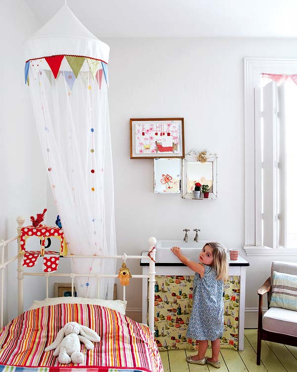 La habitación de la niña es muy alegre y sigue el patrón del resto de la vivienda, con el contenedor en blanco, mobiliario recuperado, elementos con la pátina del tiempo muy visible. Preciosa vivienda para comenzar la semana.