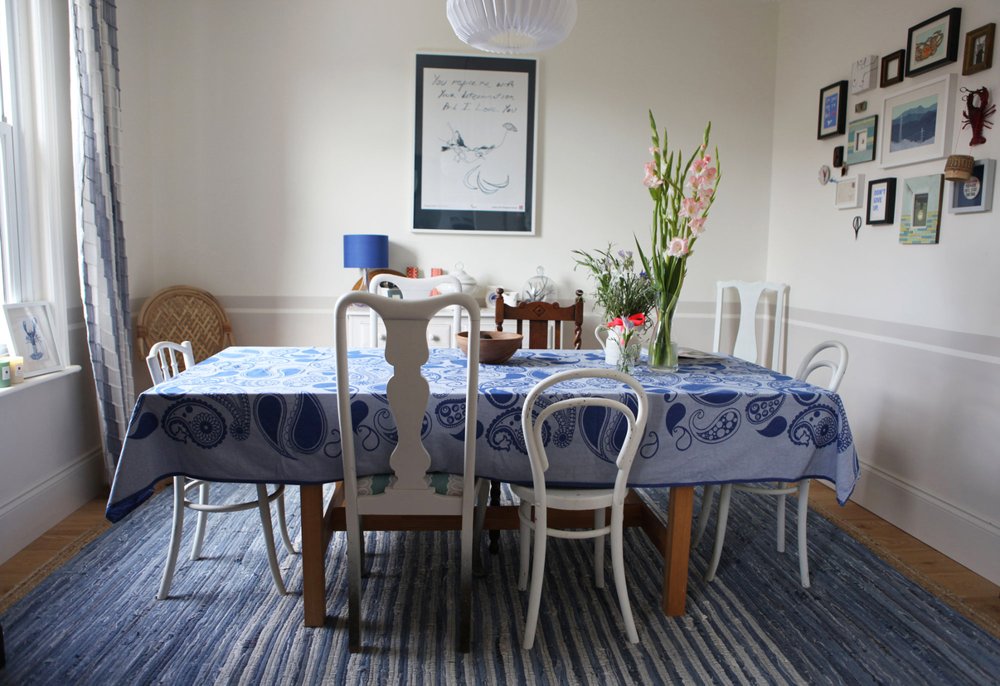 We think that colour is very important, and with space and ligthing are the three pillars of interior design. We are visiting Charlie´s house today, creative in Farow and Ball. She lives in Dorset, UK, sorrounded by beautiful blue, green and neutrals and a flamingo in her bathroom. Let´s see it!