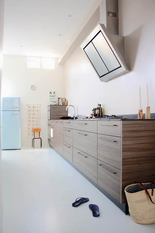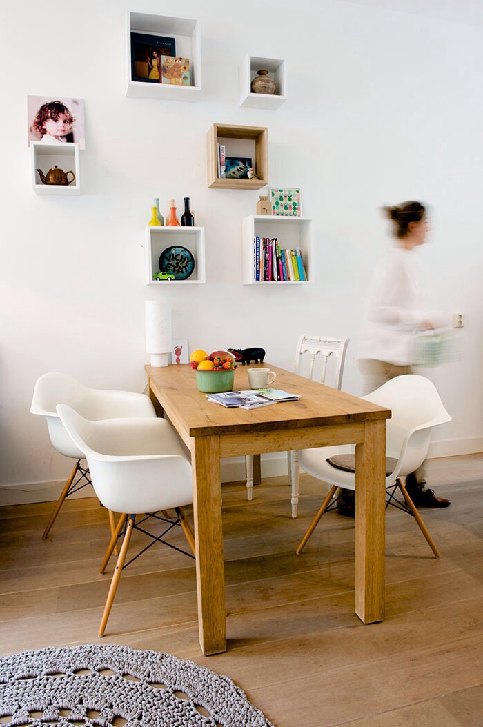 Me encanta el diseño holandés. Me gusta su percepción del espacio, su simplicidad y a la vez su gusto por los objetos bien diseñados, por colores que combinan bien pero con chispa. Hoy visitamos la vivienda de una interiorista holandesa, que se llama Hedda Pier. Ella trabaja desde casa y veremos un precioso panel de inspiración o moodboard; la cocina abierta al comedor con muebles de diseño moderno combinados con una nevera retro Smeg; el suelo pintado en blanco; el dormitorio principal con el papel pintado que recuerda a tablas de madera con pintura gastadas.