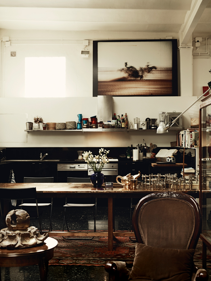 Nos asomamos hoy en la vivienda de una pareja de artistas; él es arquitecto y pintor, ella es fotógrafa. Vamos a ver parte de su salón y de la cocina.