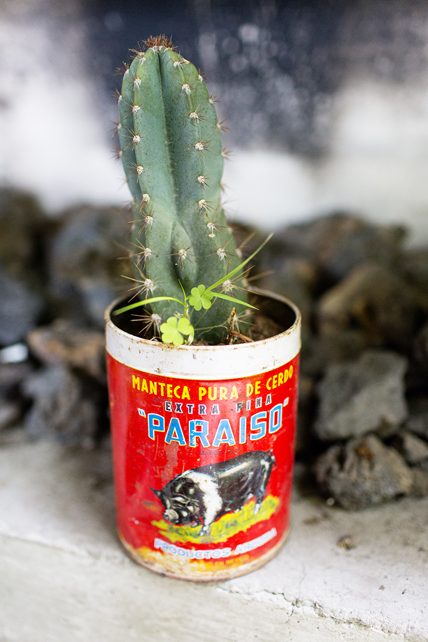 Zona del aparador con plantas y objetos vistos. Lo que se guarda dentro es también decoración.La zona de la chimenea, pintada de blanco con fotografías, plantas y mobiliario reciclado.La cocina es muy singular, tiene la zona de lavado y la de cocinado dentro de un espacio alicatado. La presencia de plantas y elementos decorativos da al lugar más calidez.Espacio de trabajo mínimo al lado de la chimenea.Plantas y elementos decorativos.El pasillo es un espacio olvidado para decorar con plantas, almacenaje, cuadros, etc…Zona de juegos .El baño, muy sencillo está alicatado de blanco y el suelo con damero negro y blanco. La bañera de patas le da un toque muy vintage.El dormitorio del niño, muy alegre.La zona del vestidor con un colgador hecho de tronco.