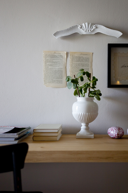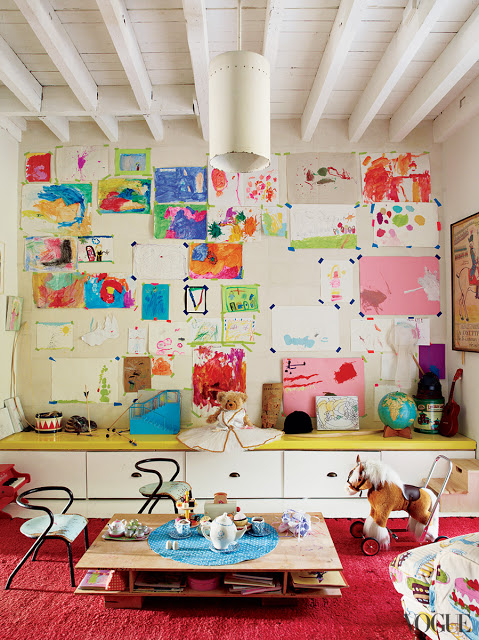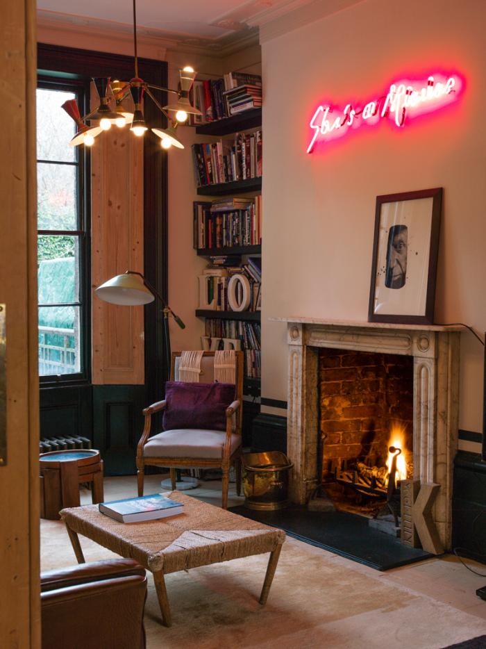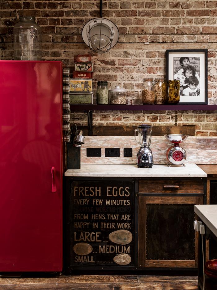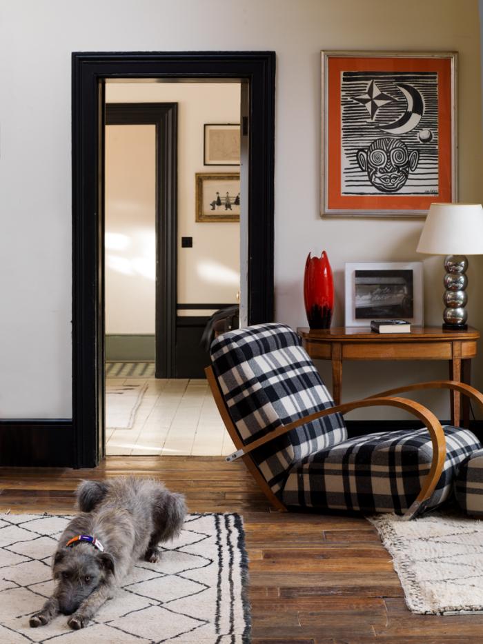 Durante 5 años estuvieron realizando la reforma de esta casa. Cuidaron todos los detalles, eligieron cada pieza de mobiliario y decoración, buscaron sus muebles por mercadillos, brocantes, ventas de garaje. Destacaría detalles como la elección del papel pintado de la habitación infantil, la combinación con la pintura blanca de carpintería, rodapie, molduras… para suavizarlo, el suelo pintado a modo de damero, el maravilloso suelo recuperado, la zona del hogar con ese fantástico ladrillo cara vista, el estar con el sofá Chester y la bella lámpara Jieldé.