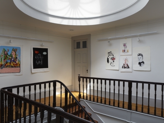 En la pared perpendicular se colocaron posters del propietario de la artista Leia Bell, que dan un aire muy colorido al espacio.