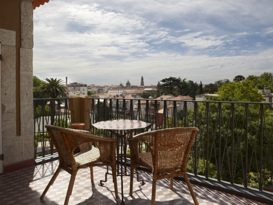 Elegimos una mesas y sillas sencillas de aire rústico, con cojines en rojo vivo.