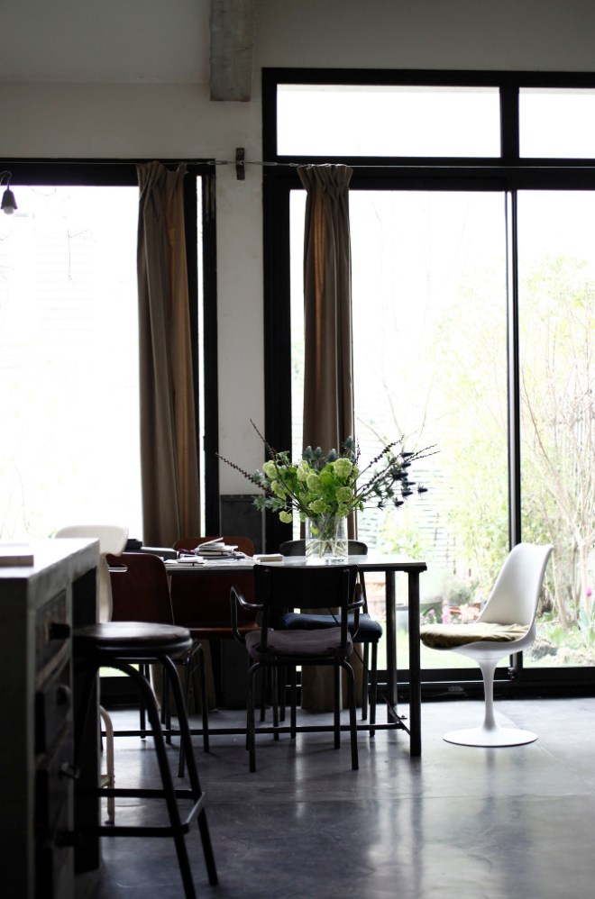 Con lámpara sencilla de campana se ha logrado una iluminación específica para la mesa de comer, lo que hace muy acogedor el rincón.