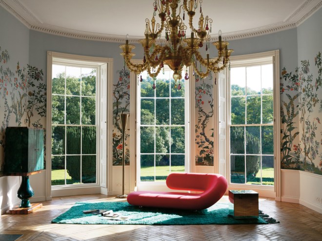 Es un espacio que cambia a lo largo de la película, desde el estilo más clásico que vemos arriba, hasta el estilo más sesentero (maleta como mesa de centro, alfombra de cebra, sofá de media bañera) de la foto superior. Esto tiene que ver con las ganas de Holy de asentarse y llevar una vida más tradicional, incluso teje un jersey!