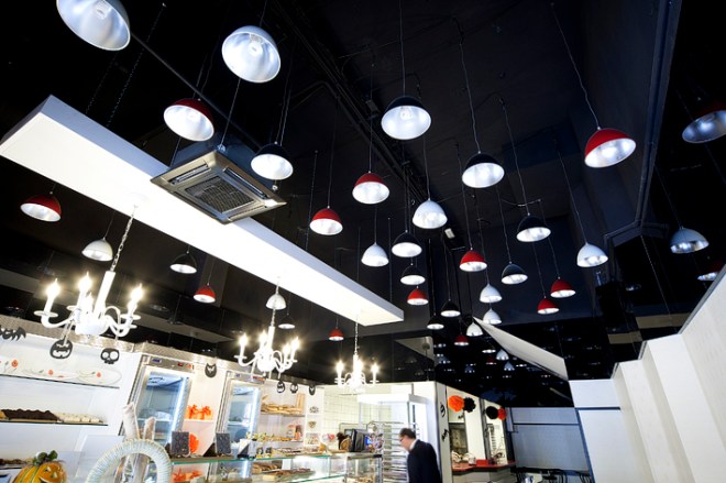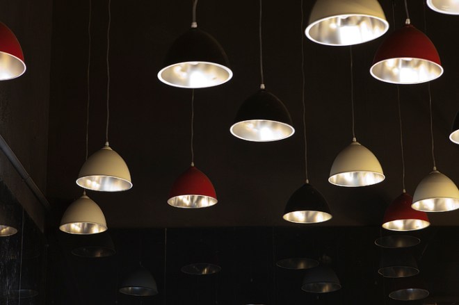 Había muchas lámparas, adornos hechos con materiales reciclados, cubos, botellas francesas y belgas de los años 30 y tipografías de la misma época.