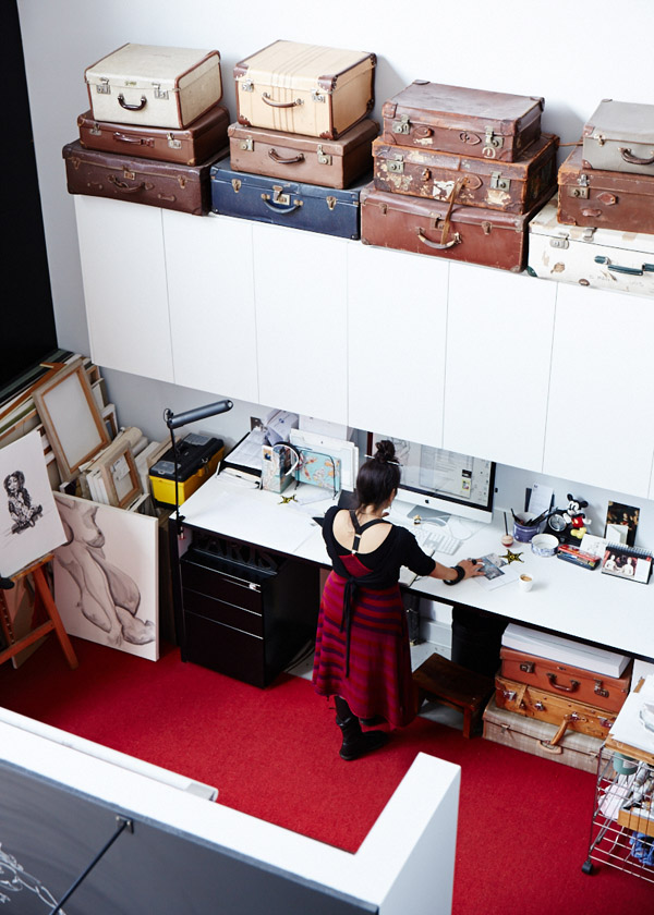 We are traveling to Melbourne today; this city drives me crazy! We find Theo and Soula, a couple of designers that live in this wonderful loft in the north of the city. I really like how they live and work in the same place, how they designed it. I really loved the group of suitcases at the top of the counters, the fantastic Potence lamp in the dining room, the same colour floors. Take a look, it´s worth it!