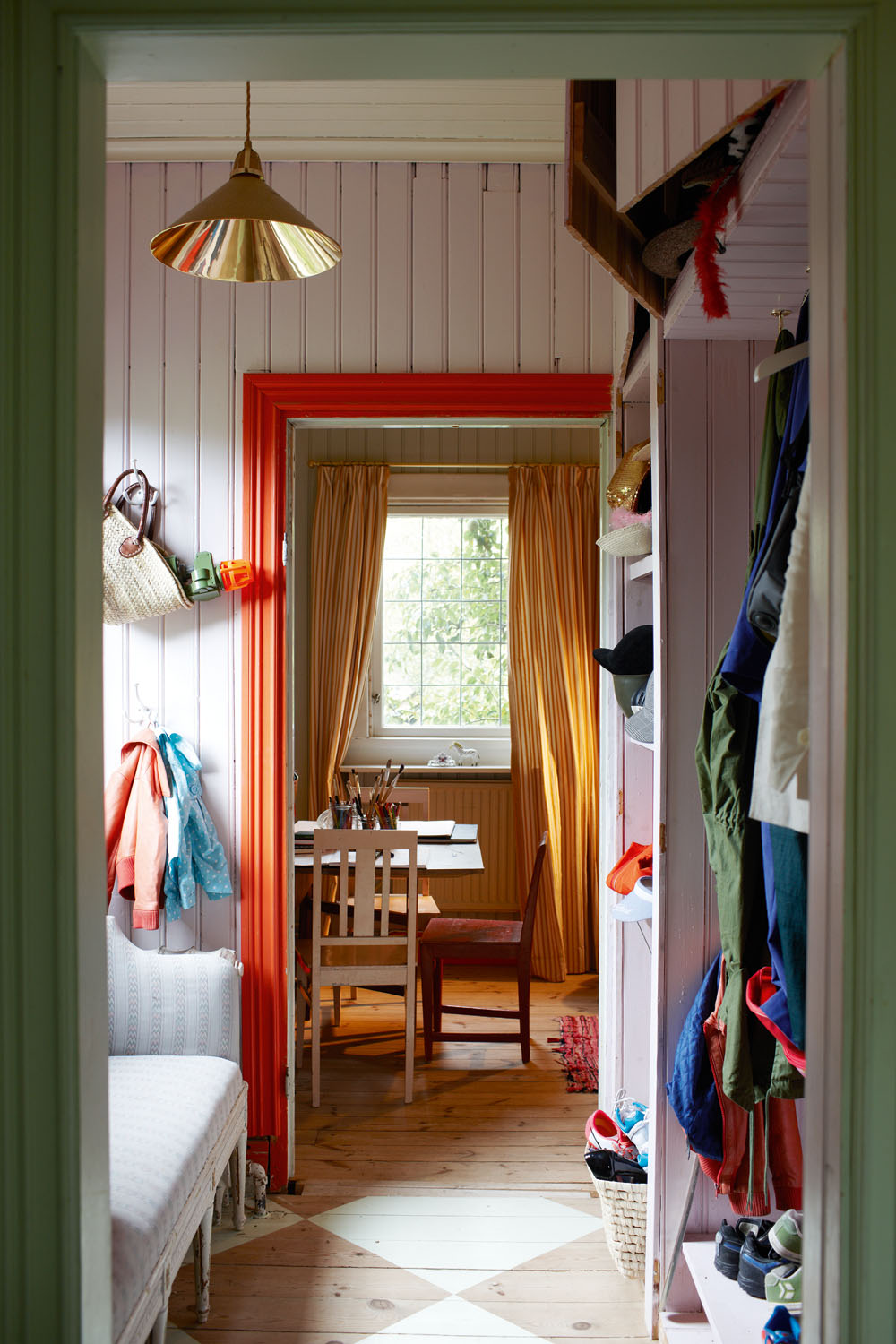 A veces me encuentro con espacios con gran atractivo, que me gustaría visitar y estoy segura de que me sorprendería con cada rincón. En la vivienda que visitamos hoy entreveo en las fotos unos espacios ricos en colores y texturas, en elementos sorprendentes. Como de cuento, el suelo se pinta en damero, las camas se esconden tras las cortinas, puertas pintadas de azul brillante, un ángel dorado sobrevuela la mesa de comedor.