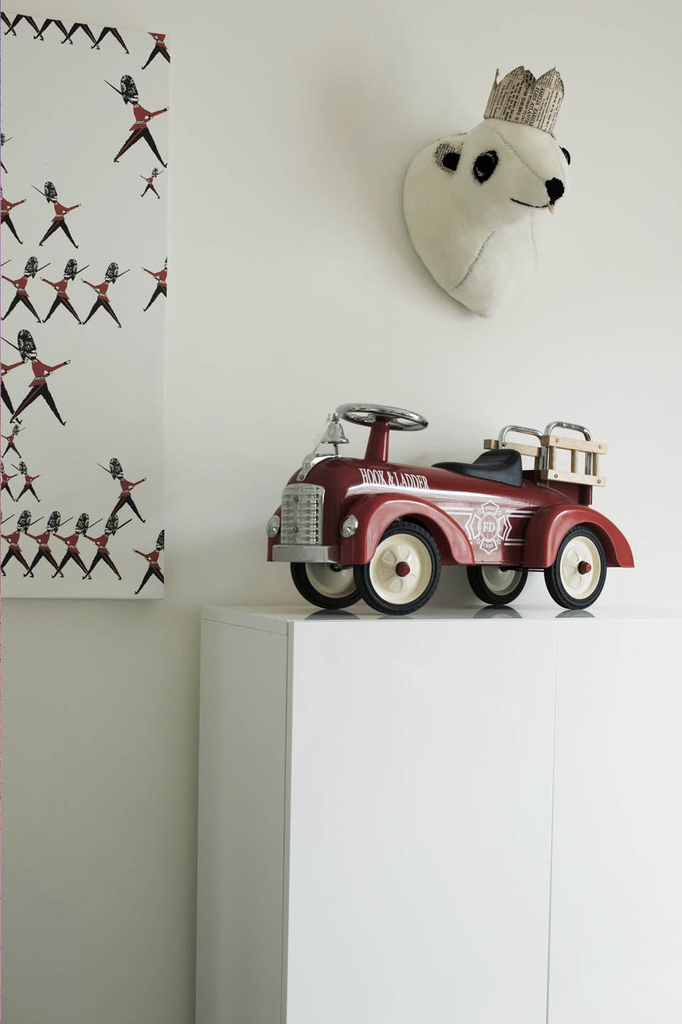 This is a different nursery. Bobo Kods Shop has done the design project and it´s very unusual to find industrial objects and dark colours in a nursery. I think it looks great, because of the contrast with other objects, warmer and brighter colors.