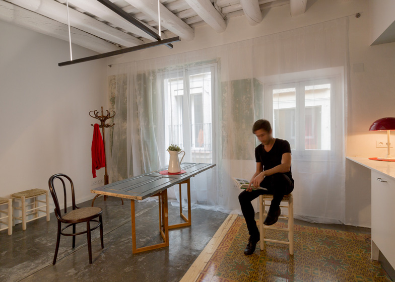 Esta es una vivienda muy pequeña, que está dividida en dos espacios amplios y un baño. El espacio que ocupa la cocina (como es habitual en los proyectos de Nook, una cocina de diseño lineal y sencillo, con espacio para el comedor o zona de estar) puede ser utilizado de maneras diferentes, como estudio, estar, comedor, etc..