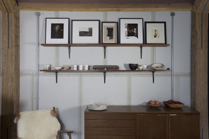 Un espacio que se utiliza para otra cosa y no pierde su originalidad. Paredes desnudas que parecen sin terminar, líneas de uniones ordenadas, líneas de tubos eléctricos, líneas que conforman las vigas y pilares de la estructura. Todo se diluye en un interior confortable, neutro, acogedor. Un color domina sobre todo, el gris en múltiples matices, en el interior y en el exterior. Es un granero-vivienda-estudio de arquitectura en Gales.